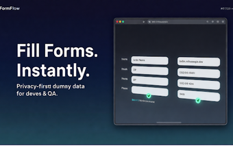FormFlow: Smart Data Filler là một tiện ích mở rộng Chrome được thiết kế cho các nhà phát triển, kỹ sư QA và nhà thiết kế để đơn giản hóa quy trình điền vào các mẫu web. Công cụ này tự động hóa việc tạo ra dữ liệu giả lập thực tế, giảm đáng kể thời gian dành cho các nhiệm vụ lặp đi lặp lại. Người dùng có thể hưởng lợi từ khả năng điền vào các mẫu với dữ liệu thông minh dựa trên các thuộc tính trường như tên, email, số điện thoại và mã ZIP, tất cả đều được thực hiện trong vài mili giây.